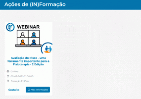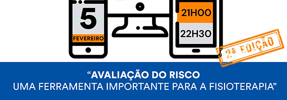 A Ordem dos Fisioterapeutas convida-o a participar na 2ª edição do Webinar “Avaliação do Risco - uma ferramenta importante para a Fisioterapia”, a decorrer no dia 5 de fevereiro, das 21h00 às 22h30.